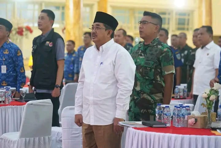 Jambi – Bupati Tanjung Jabung Barat, Drs. H. Anwar Sadat, M.Ag menghadiri Rapat Koordinasi Penanganan Bencana Kebakaran Hutan dan Lahan (Karhutla) Provinsi Jambi Tahun 2025 yang dilaksanakan di Balai Prajurit Korem 042/Garuda Putih, Kamis (17/7).