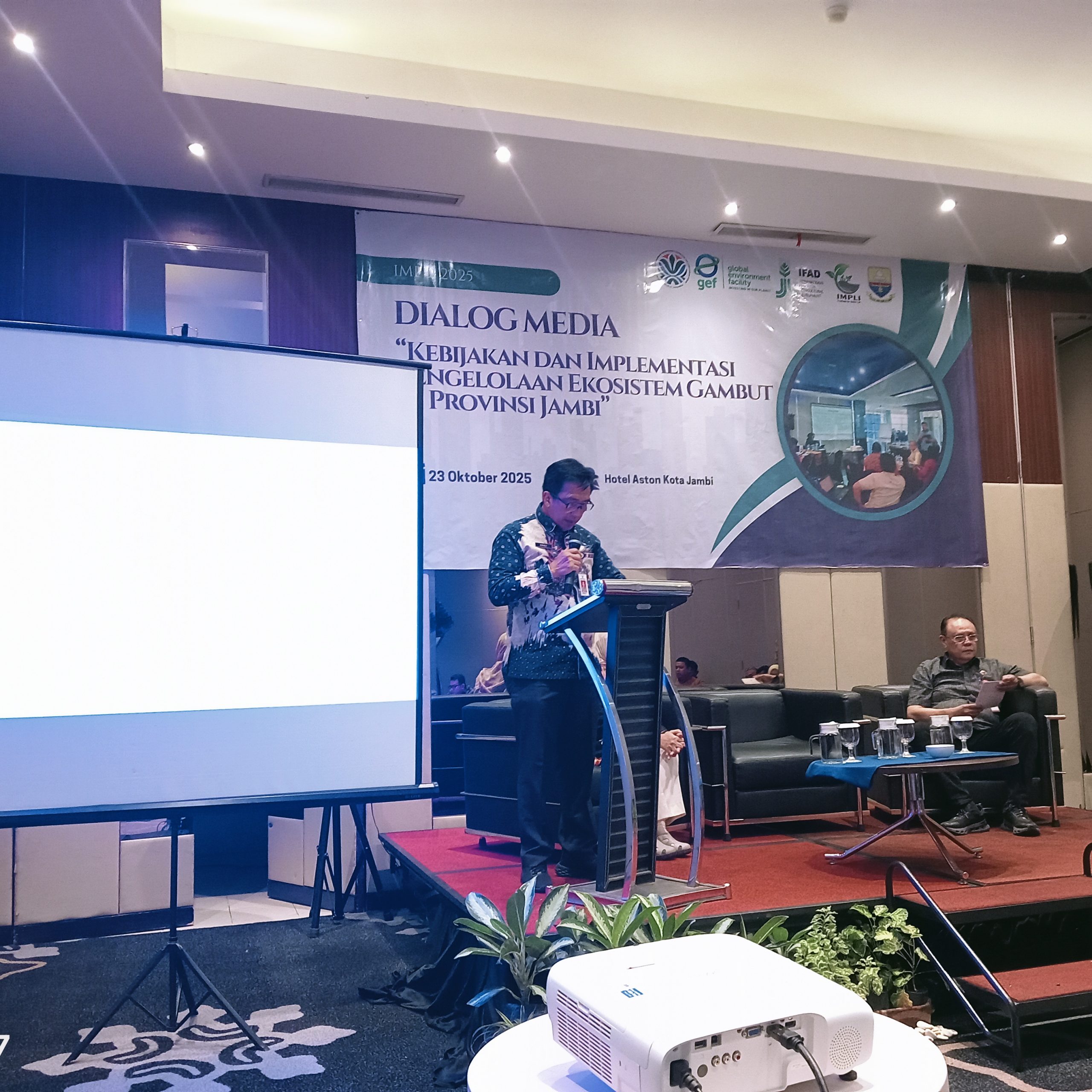 JAMBI – Sekretaris Daerah (Sekda) Provinsi Jambi Sudirman yang diwakili oleh Asisten 1 Bidang Pemerintahan dan Kemasyarakat Setda Provinsi Jambi Arif Munandar membuka acara Dialog Media dengan tema “Kebijakan dan Implementasi Pengelolaan Ekosistem Gambut di Provinsi Jambi, bertempat di Hotel Aston, Kamis (23/10/2025).