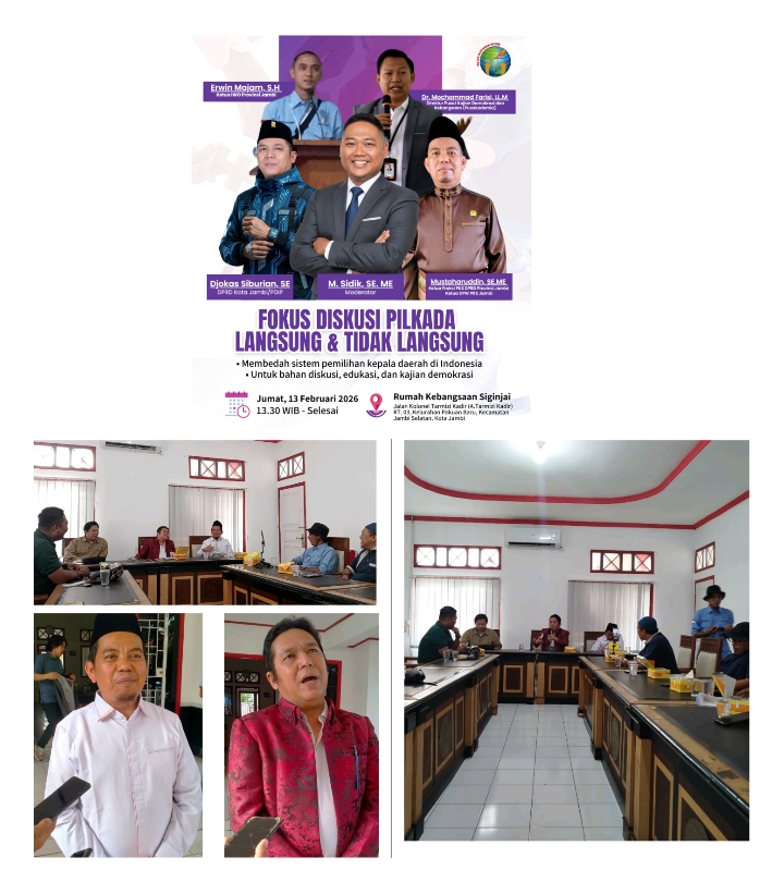 “Sebagai organisasi profesi wartawan, IWO memiliki tanggung jawab moral untuk mendorong literasi publik dan menghadirkan ruang-ruang diskusi yang objektif dan berimbang. Media bukan hanya penyampai informasi, tetapi juga jembatan dialog antara kebijakan dan masyarakat. Karena itu, FGD ini menjadi bagian dari komitmen kami untuk turut menjaga kualitas demokrasi melalui edukasi dan kajian yang argumentatif,” kata Ketua PW IWO Provinsi Jambi Erwin Majam,SH pada saat membuka acara FGD Pilkada Langsung dan Tidak Langsung, Jumat (13/02/2026), bertempat di Rumah Kebangsaan Siginjai, Kota Jambi.