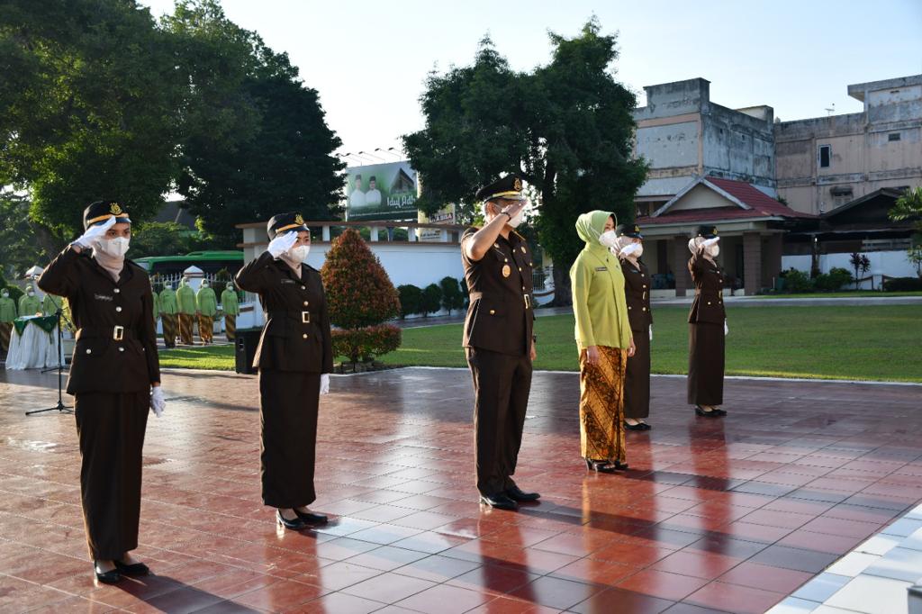Upacara ziarah dan tabur bunga dipimpin langsung Plt Kepala Kejaksaan Tinggi Jambi Dr. Bambang Gunawan yang juga dihadiri Para Asisten, Kabag TU, Koordinator, Kepala Kejaksaan Negeri Jambi beserta para istri yang tergabung dalam Ikatan Adhyaksa Dharmakarini.