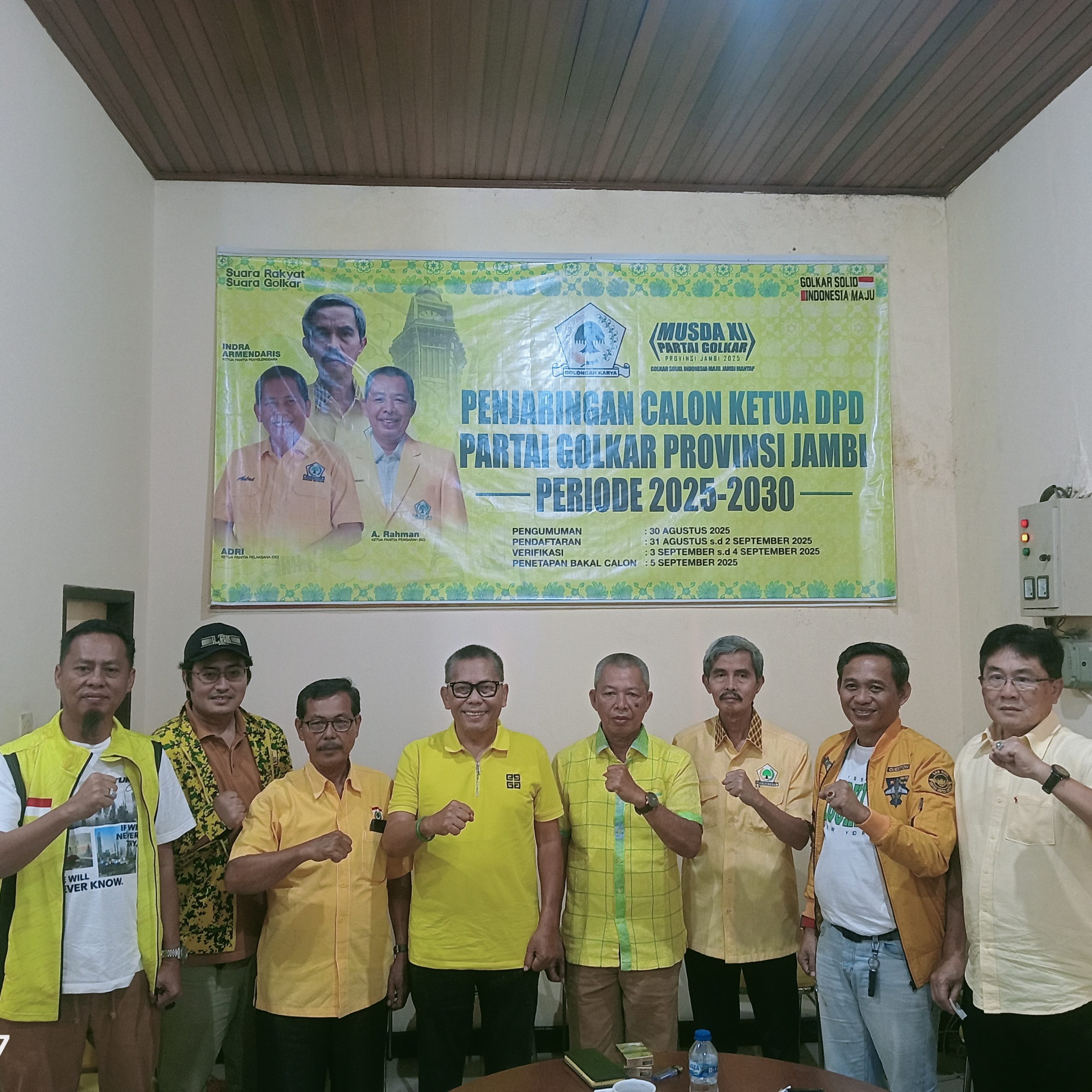 JAMBI – Penjaringan Calon Ketua DPD Partai Golongan Karya (Golkar) Provinsi Jambi Periode 2025-2030 resmi dibuka. Hal ini disampaikan langsung oleh Ketua Stering Comite (SC) Abdul Rahman, bertempat di Kantor DPD Golkar Provinsi Jambi, Sabtu sore (30/08/2025).