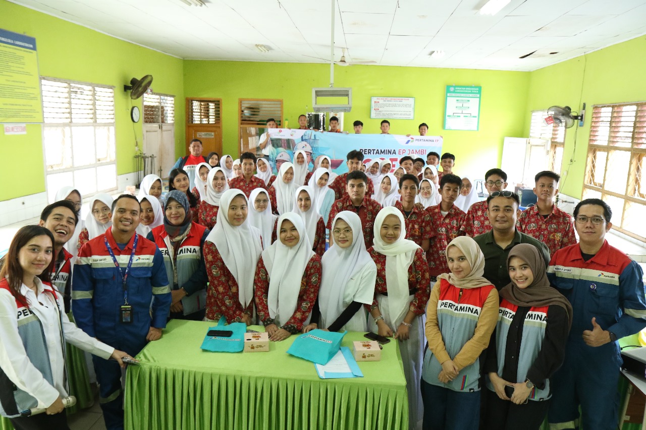 JAMBI, 22 April 2025 – Pertamina EP Jambi kembali datang ke sekolah untuk berbagi wawasan seputar industri hulu migas. Bertepatan dengan Hari Bumi, perusahaan migas yang menjadi bagian dari Pertamina Hulu Rokan Zona 1 ini membagikan wawasan mengenai zero net emission di SMA Negeri 5 Kota Jambi pada Senin (22/4). Lebih dari 50 siswa yang menjadi peserta juga diajak berkontribusi langsung terhadap alam dengan menanam pohon.