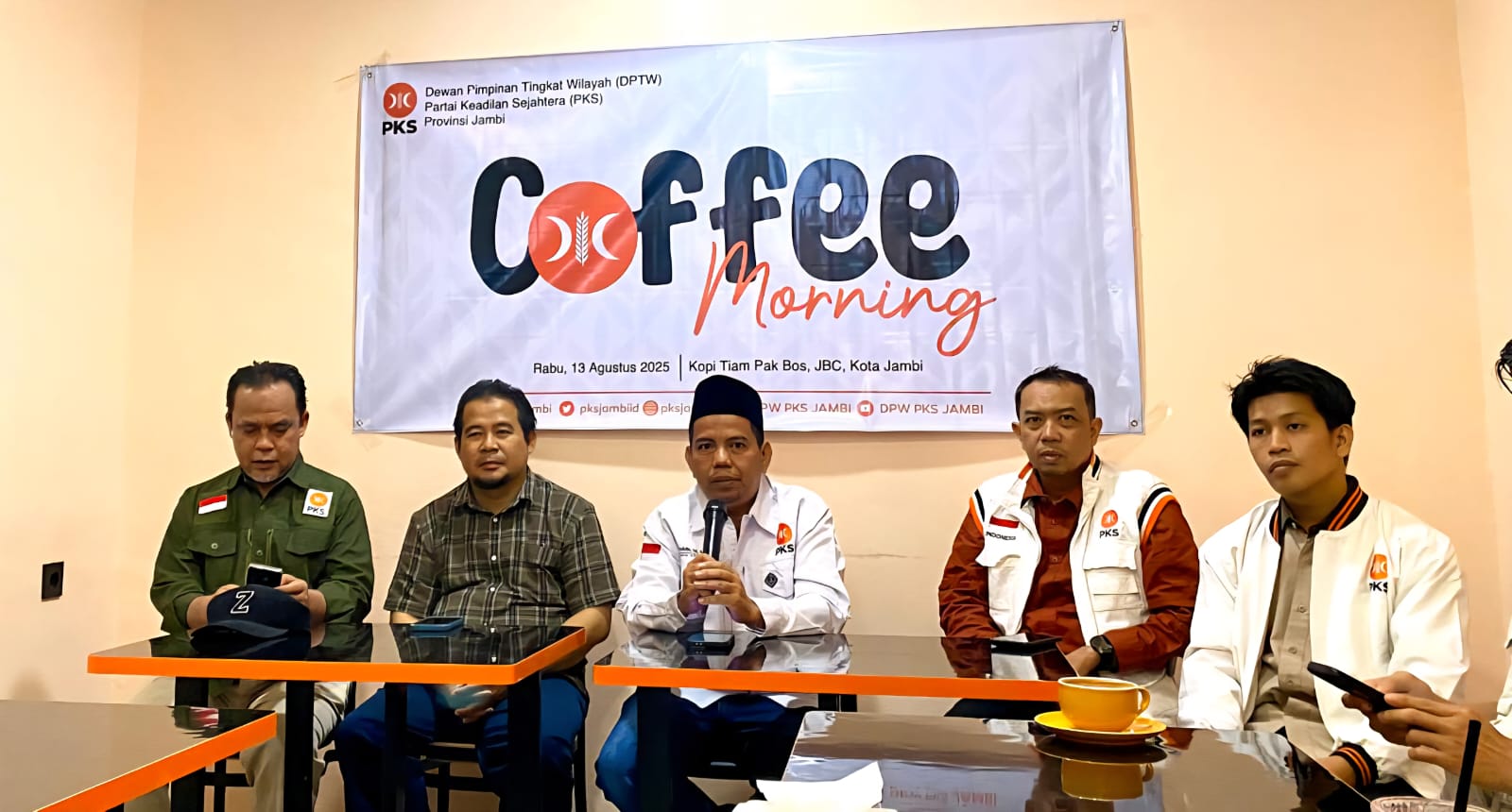 JAMBI – Dalam suasana penuh keakraban, Dewan Pimpinan Tingkat Wilayah (DPTW) Partai Keadilan Sejahtera (PKS) Provinsi Jambi menggelar kegiatan Coffee Morning bersama insan pers pada Rabu (13/8/2205), bertempat di Kopitiam Pak Bos, JBC, Kota Jambi.