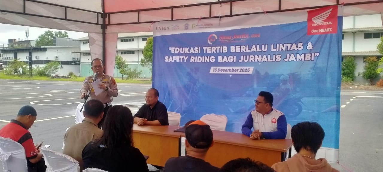 JAMBI – PT. Sinar Sentosa Primatama Dialer Jambi Bekerjasama dengan Direktorat Lalu Lintas Polda Jambi (Dirlantas Polda Jambi) mengelar Edukasi Tertib Berlalu lintas dan Safety Riding Bagi Jurnalis Jambi, bertempat di Sinsen Dialer Honda Pal 6 Kota Jambi, Selasa ( 16 Desember 2025).